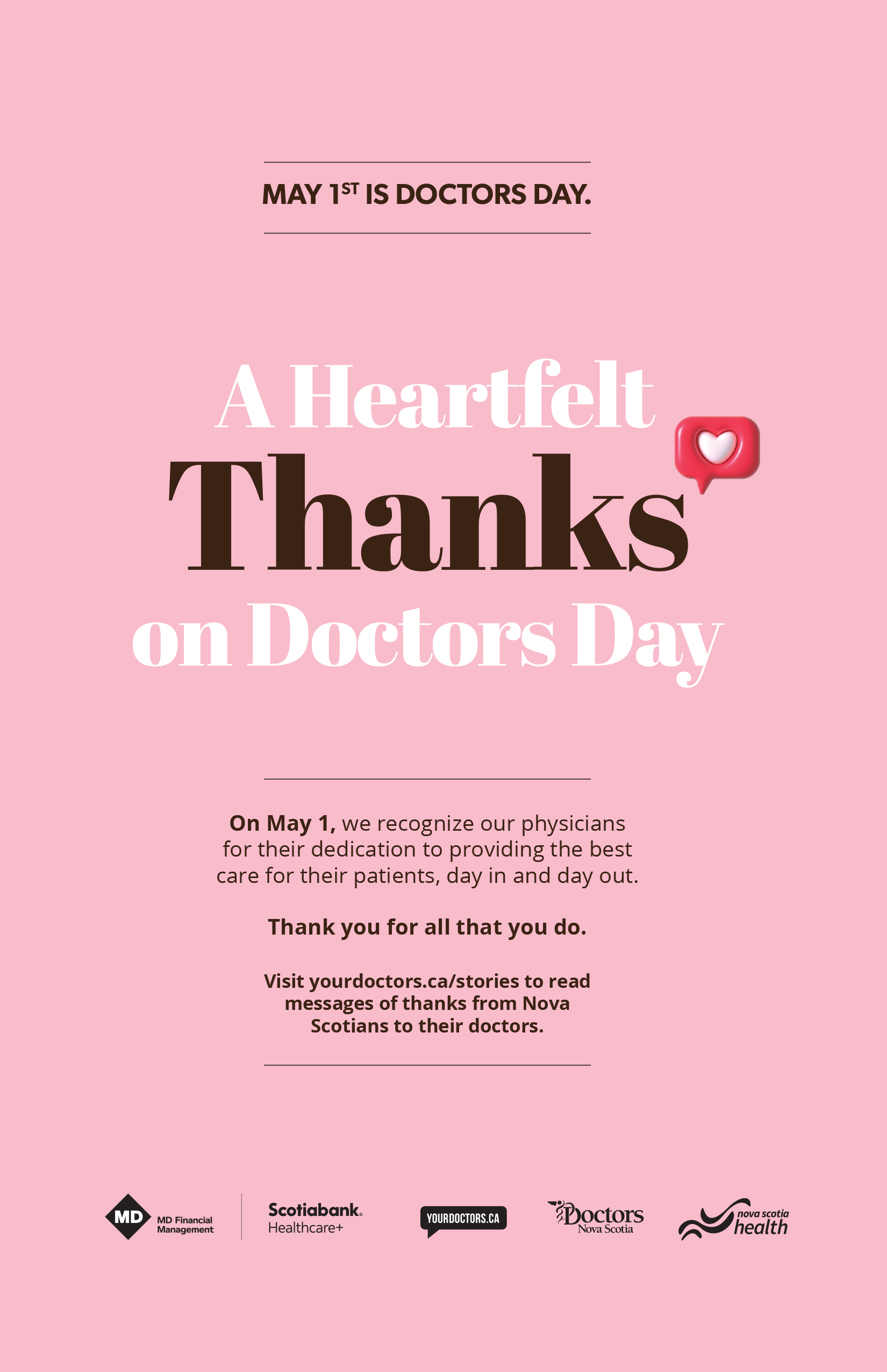 May 1st is Doctors Day. Join us in celebrating our province’s dedicated physicians for the work they do to improve the lives of Nova Scotians.